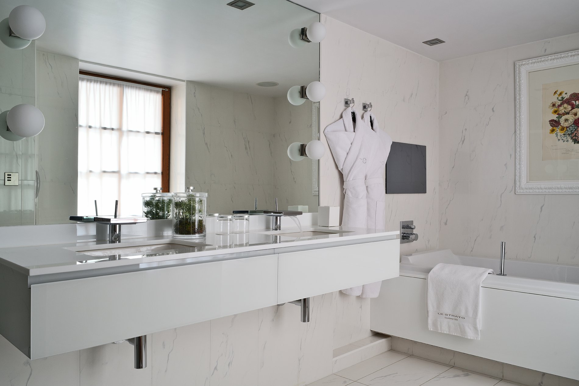 Каждый из 26 номеров и люксов, оборудованных балконом или террасой, слегка отличается от других своим оформлением для соответствия принципу очаровательного многообразия. При этом всегда соблюдается главное требование: в каждом из них вас ждет комфорт, утонченность и современность, каждая деталь была продумана. Примером этому может служить присутствие в каждой ванной комнате плоскоэкранного телевизора под видом зеркала.